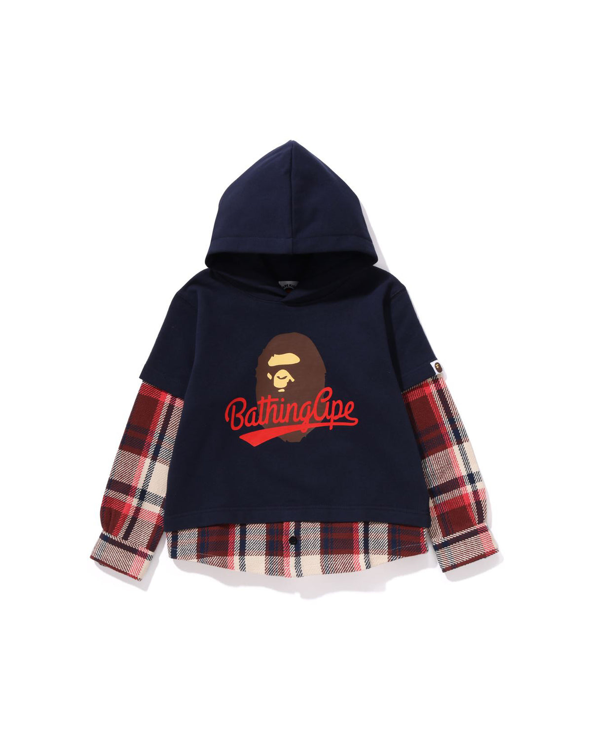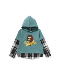 Kids BAPE Check Shirt Layered Bathing Ape Pullover Hoodie
