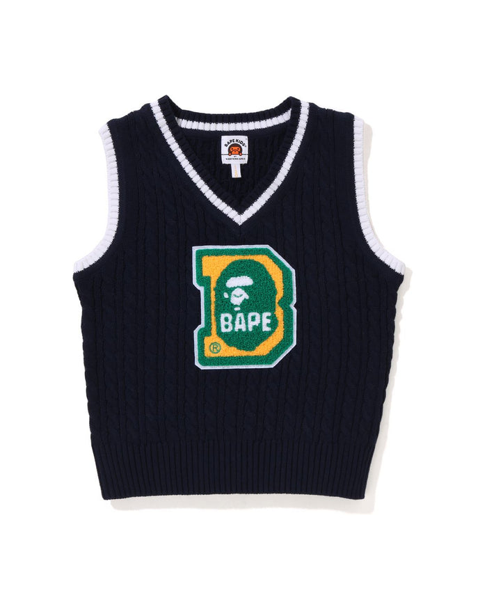 Kids Ape Head B Patch Cable Knit Vest