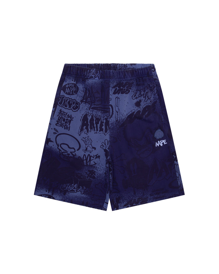 Moonface logo graffiti print sweat shorts
