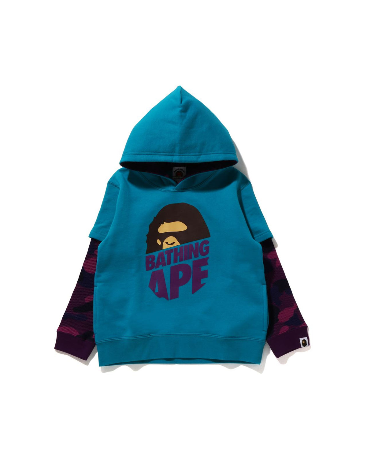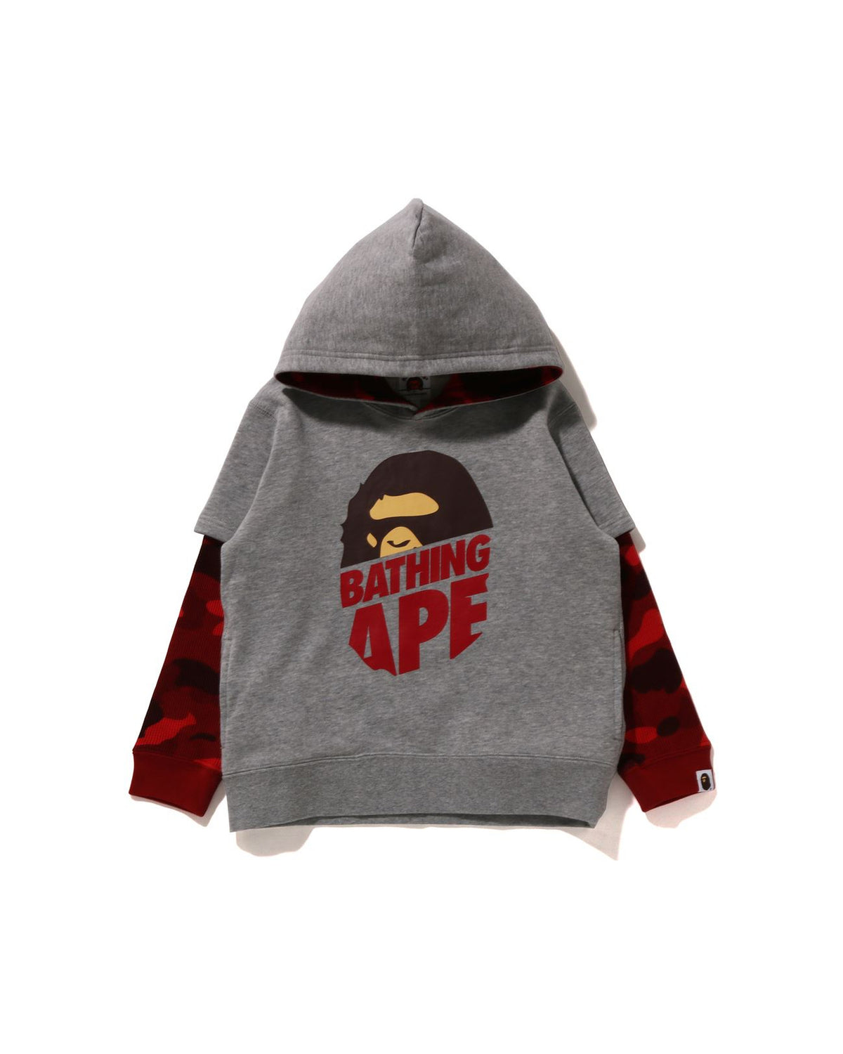 키즈 컬러 카모 에이프 헤드 레이어드 풀오버 후드 티셔츠